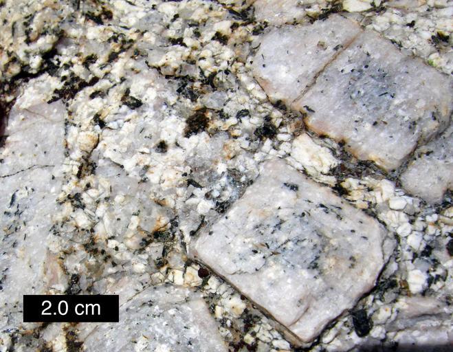 | Keywords: FeldsparsGranite.JPG en Potassium feldspar crystals in a granite eastern Sierra Nevada Rock Creek Canyon California own Wilson44691 2008-08 Photograph taken by Mark A Wilson Department of Geology The College of Wooster http //www3 wooster edu/geology/MWilson html Feldspar Granite Sierra Nevada United States Rocks in California |