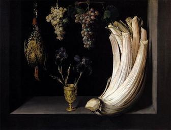 | Keywords: Felipe Ramirez - Still Life with Cardoon, Francolin, Grapes and Irises - WGA18991.jpg Artwork Creator Felipe Ramirez 1628 Oil on canvas size cm 71 92 Institution Prado object history credit line accession number WGA link 18991 http //www wga hu/art/r/ramirez/cardoon jpg http //www wga hu/html/r/ramirez/cardoon html PD-old-100 painting still-life Spanish 1601-1650 Felipe Ramirez Spanish Baroque paintings in the Museo del Prado Ramirez 1628 paintings WGA form painting WGA type still-life WGA School Spanish WGA time period 1601-1650 17th-century still life paintings in Spain 17th-century still life paintings of fruits Still life paintings of vegetables Still-life paintings of dead birds Cups in art 1620s still life paintings 17th-century oil on canvas paintings in Spain 1620s paintings from Spain Still-life paintings with irises Cardoons in art |