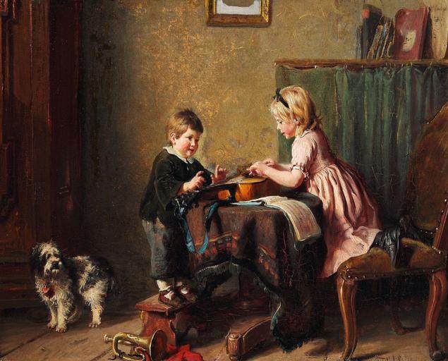 Keywords: Felix Schlesinger - Allein zuhaus.jpg oil panel cm 31 25 accession number object history credit line ~ lower right signature http //www arcadja com/auctions/de/schlesinger_felix/kunstler/25957/ Bruun Rasmussen 27 09 2011 via ARCADJA auction results PD-old-auto-1923 1910 Felix Schlesinger Paintings of children