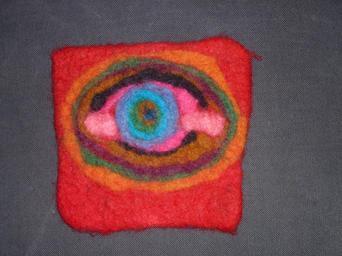 Keywords: felt children work art colorful wool red wool fibers carding