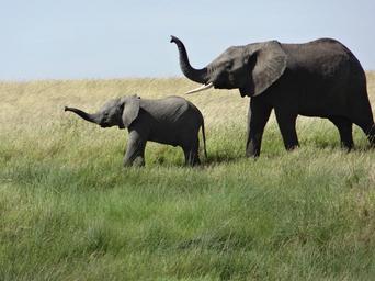 Keywords: female elephant baby grass