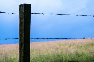 Keywords: fence barbed wire pasture fence post pile demarcation barrier imprisoned