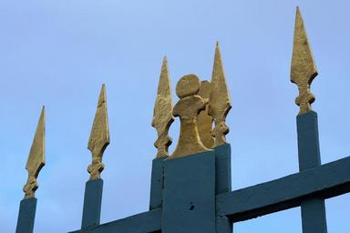 Keywords: fence castle wilhelmsthal calden pointed gold golden metal wrought iron close fence top