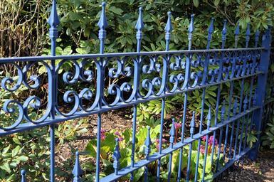 Keywords: fence demarcation metal iron pointed blue
