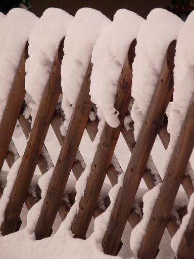 Keywords: fence garden fence wood fence battens winter snow snowy cold icy white brown