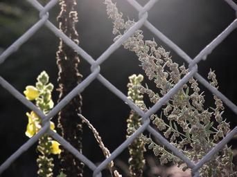 Keywords: fence mulleins wire mesh fence nature scrub plant white green wire fence hidden landscape grow bushes shrubs braid bloom beautiful