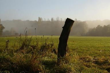 Keywords: fence post fog meadow autumn landscape morgenstimmung grass