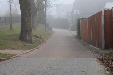Keywords: fence road tree fog atmosphere morning
