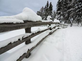 Keywords: fence snow winter ice cold forest trees white firs away