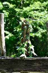 Keywords: fence wood wood fence old weathered overgrown ivy nature close
