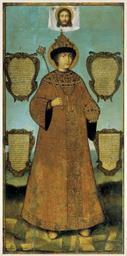 | Keywords: Feodor III by Ivan Saltanov 2.jpg Ца ь Фёдо Алексеевич пе ед об азом Спаса е укотво ного 1686 год Иван Салтанов Е офей Елин Лука Смолянинов осква О ужейная палата Де ево; темпе а масло 244 х 119 Поступила в 1891 году П оисходит из А хангельского собо а осковского К емля ГИ инв 29175 И VIII-3760 Feodor III of Russia addressing the Holy Mandylion http //www svyatayarus ru/data/icons/195_tsar_feodor/index php Original work stored at the State Historical Museum Moscow Original work 1685 the year when Sophia Alekseyevna commissioned the work Иван Салтанов Е офей Елин Лука Смолянинов PD-Russia-2008 <gallery>file Mandylion with tsar Feodor jpg</gallery> Portrait of Feodor III with Mandylion GIM Portrait of Feodor III with Mandylion GIM Exhibition Sainte Russie Moscow 2011 - icons Files uploaded by Shakko from various sources |