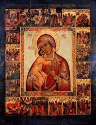 | Keywords: Feodorovskaya with miracles 1680s.jpeg  Феодо овская икона Божией  ате и со сказанием о чудесах 1680-е гг Список с п ославленной святыни го ода Кост омы Богомате и Фёдо овской 1239 года Кост омской музей-заповедник http //www cirota ru/forum/view php subj 53563 order pg 50 s 1680 Author PD-Art Feodorovskaya with miracles Feodorovskaya with miracles 1680s |