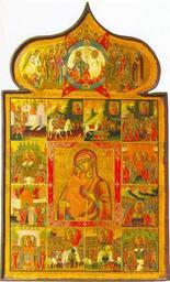 | Keywords: Feodorovskaya with miracles from Kostroma.jpeg  Феодо овская икона Божией  ате и со сказанием  ачало XIX века Кост ома Де ево левкас темпе а http //www cirota ru/forum/view php subj 53563 order pg 43 century 19 author PD-Art Feodorovskaya with miracles |