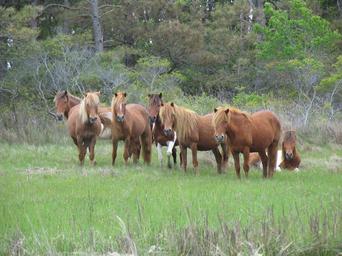 Keywords: feral horses wild grazing panorama landscape range herd wildlife animals countryside meadow assateague island virginia usa wilderness portrait