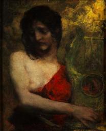| Keywords: Ferdinand Keller (attrib.) - Halbakt einer jungen Frau in rotem Kleid mit Lyra.jpg attributed to oil canvas cm 41 5 33 5 accession number object history credit line exhibition history ~ lower right signature http //www hampel-auctions com/de/94-358/onlinecatalog-detail-n1976 html back 5 Hampel Auctions 19 Sep 2013 lot 520 PD-old-auto-1923 1922 Images from Hampel Auctions Ferdinand Keller Portrait paintings of women Paintings of women holding musical instruments Nude or partially nude women wearing dresses in art |