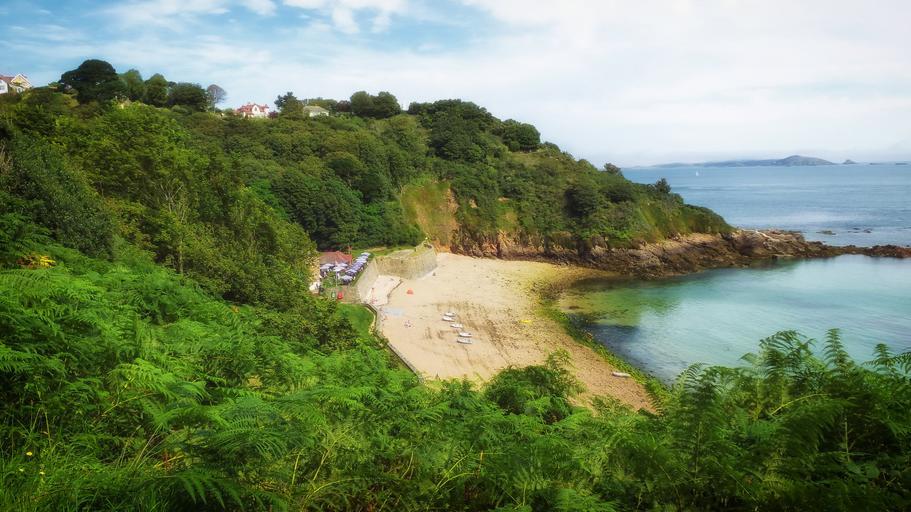 Keywords: fermain bay guernsey coastline shoreline beach mountains nature outside sea ocean seaside summer