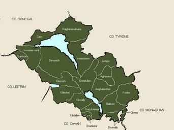 Keywords: Fermanagh parish locations.gif en Map showing the parishes of County Fermanagh in ancient Ireland 2011-06-20 Parish Records County Fermanagh author PD-old-100 Uploaded with UploadWizard Maps of County Fermanagh