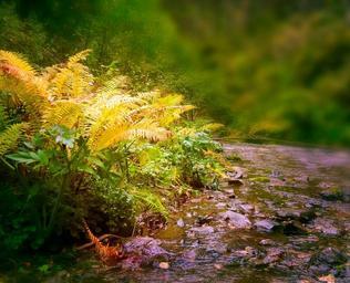 Keywords: fern plant autumn nature landscape fairy tale river flowers bright color light processing