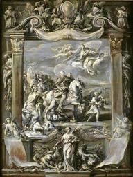 | Keywords: Ferri Apotheosis of John III Sobieski.jpg Artwork Creator Ciro Ferri ca 1684 oil canvas cm 97 73 Institution Wilanów Palace Museum accession number Wil 1726 object history credit line Painted en grisaille with John III Sobieski on horseback Pope Innocent XI goddess Roma symbol of civilization and Romulus and Remus with the she-wolf http //www wilanow-palac pl/sobiesciana/apoteoza_jana_iii_sobiesciana html www wilanow-palac pl See below PD-old-100 DEFAULTSORT 1684 circa; Apotheosis of John III Sobieski Ciro Ferri Italian paintings in the Wilanów Palace Apotheosis of modern time leaders John III of Poland Innocentius XI in art Dea Roma Romulus and Remus in post-classical art Grisaille |