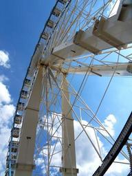 Keywords: ferris wheel amusement park leisure park attraction manege nacelle height blue sky attractive festival wheel structure metal