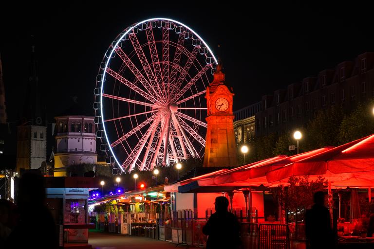 Keywords: ferris wheel castle tower rhine river abendstimmung