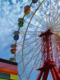 Keywords: ferris wheel clouds amusement park park ferris amusement wheel sky fun fair ride entertainment carnival festival attraction color bright rotate