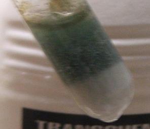 Keywords: Ferrous carbonate oxidation.JPG en The reaction of white iron II carbonate with the dissolved oxygen in ordinary water turns it into a greenish-gray color where the water was own Chemicalinterest 2011-1-4 Iron compounds Carbonates