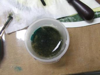 Keywords: Ferrous hydroxide.JPG en A container with an iron II hydroxide precipitate It was made by electrolysis of a solution of sodium carbonate with an iron anode own Chemicalinterest Iron compounds Electrolysis