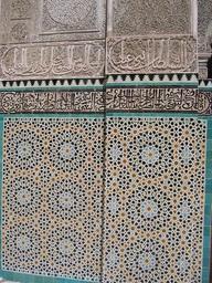 Keywords: Fes Medersa Bou Inania Mosaique2.jpg Fes Maroc <br> Medersa_Bou_Inania détail <br> Auteur Fabos 1/4/05 Bou Inania Madrasa Fes Zellige Plaster carvings in Islamic cultures Decorated walls Arabesque art Ornaments in Morocco