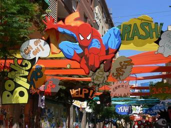 | Keywords: Festes majors de Gràcia 2010 - carrer Bruniquer.jpg ca Carrer Bruniquer decorat amb el tema dels superherois i el comic amb motiu de les festes majors del barri de Gràcia a Barcelona de 2010 L'entrada al carrer anava pressidida per n'Spiderman l'home aranya own Slastic 2010 Decorated streets Festa Major de Gràcia 2010 Spider-Man and his cast Onomatopoeia | ||||