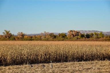 Keywords: Sandhill Cranes on the edge of the farm fields on the Refuge. Jessie Jobs/USFWS