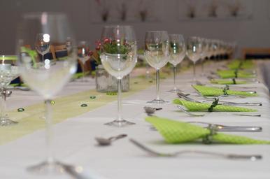 Keywords: festival table banquet table board gedeckter table celebration birthday seats glasses fixed table table decoration communion party green