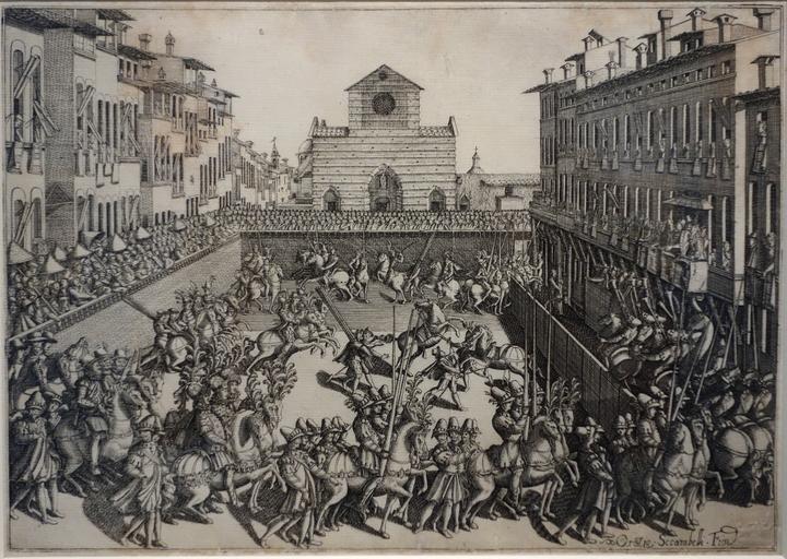 | Keywords: Festivals for the Marriage of Grand Duke Ferdinand I of Tuscany and Christina of Lorraine - Joust on the Piazza Santa Croce, by Orazio Scarabelli, 1589, etching - National Museum of Western Art, Tokyo - DSC08301.JPG en From the series Festivals for the Marriage of Grand Duke Ferdinand I of Tuscany and Christina of Lorraine by Orazio Scarabelli 1589 etching - National Museum of Western Art Tokyo Japan This artwork is in the public domain because the artist died more than 70 years ago Photography was permitted in the museum without restriction 2013-09-06 21 36 39 own Daderot PD-old-70 cc-zero Uploaded with UploadWizard Festivals for the Marriage of Grand Duke Ferdinand I of Tuscany and Christina of Lorraine |