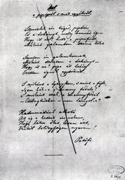| Keywords: Fetőfi Szerelem- és pipadal 1844 A.jpg Petőfi Sándor Szerelem- és pipadal c verse első változatának kézirata Az áthúzás feltehetően Császár Ferenctől származik Institution Petőfi Literary Museum Budapest Vargha Balázs szerk A Petőfi Irodalmi Múzeum Évkönyve 1959 p 144 http //muzeum arcanum hu/kiadvanyok Magyar Digitális Múzeumi Könyvtár 1844 Sándor Petőfi Pd-old Poems by Sándor Petőfi Collections of the Petőfi Literary Museum Budapest 1844 works in Hungary Poems in Hungarian Manuscripts by Sándor Petőfi |