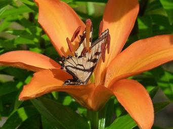 Keywords: feuerlilie lilium bulbiferum flower beautiful close-up nature garden summer season orange day lily flora bloom macro butterfly insect