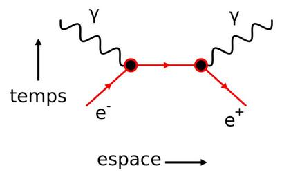 | Keywords: Feynman EP Annihilation French.svg fr Diagramme de Feynman montrant les vecteurs Espace et Temps de l'annihilation d'un électron-positron en Feynman diagram showing Space-Time vectors of Electron-Positron Annihilation French 2016-12-24 own thumb bitwise/VateGV other versions Feynman diagrams |
