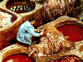 Keywords: fez tannery morocco old colorful moroccan leather color dying smelly red