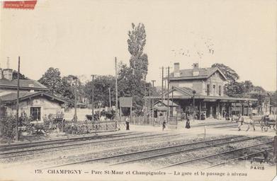 | Keywords: FF 179 - CHAMPIGNY - Parc St-Maur et Champignoles - La gare et le passage à niveau.jpg fr Carte postale ancienne éditée par FF à Paris <br />CHAMPIGNY - Parc St-Maur et Champignoles - La gare et le passage à niveau 1913-01-19 postcard - own archive Claude_villetaneuse scanner Custom license marker 2014 03 22 Anonymous-EU PD-1923 Uploaded with UploadWizard Gare du Parc de Saint-Maur Ligne de Vincennes Former level crossings in France Postcards of Val-de-Marne | ||||