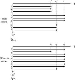 | Keywords: Fiabilite essai censure mort subite elements retires.svg en Reliability tests with right censoring sudden death method top and decreasing sample size method bottom fr Essais de fiabilité censurés méthode de la mort subite haut et méthode des éléments retirés bas own Cdang <span class signature-talk >talk</span> 2012-05-29 inkscape Reliability Cc-zero | ||||