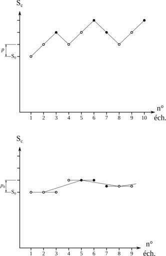 | Keywords: Fiabilite essais tronques methodes escalier et iterative.svg en Truncated failure tests for a given duration t Top scale method starting with a stress level S<sub>0</sub>; at each step the stress level is increased by a step p if the sample does not fail after t and is decreased by p if it fails before t Bottom iterative method possibly several samples are tested at the same stress level at the same time; the step is adjusted with the rate of samples that fail after t fr Essais de défaillance tronqués pour une dure t Haut méthode de l'escalier ; on commence à un niveau de contrainte S<sub>0</sub> ; à chaque étape la contrainte est augmentée du pas p si l'échantillon ne présente pas de défaillanc eua bout du temps t ; il est diminué de p si la défaillance survient avant t Bas méthode itérative on peut soumettre plusieurs échantillons à la même contrainte en même temps ; le pas est ajusté en fonction du taux de défaillance à t 2012-06-11 own Cdang inkscape cc-zero Uploaded with UploadWizard Reliability |