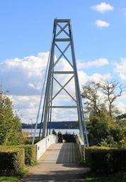 | Keywords: Fiberline Bridge Kolding Denmark 2013a.JPG en Fiber Line Bridge is one of the world's largest fiberglass composite bridges and the first to cross a railway line which increases the requirements for the bridge It is located in Kolding Denmark The bridge was built in 1997 as a collaboration between the Municipality of Kolding FiberLine Composites and Rambøll It is Scandinavia's first composite bridge The bridge weighs 12 tonnes which is half of a bridge in metal / concrete Another of the advantages of fiberglass composite is that it is almost maintenance-free Since its construction in 1997 there have only been removed graffiti and algae The bridge is also not affected by rain frost and salt Lifespan is at least 100 years Technical data Length total 40 m Length bridge section 1 27 m Length bridge section 2 13 m Width total 3 2 m Tower height 18 5 m Total weight 12 tons Capacity 500 kg/m2 Capacity running load 5 tons Maximum wheel pressure 1 8 tons The maximum deflection L/200 13 cm Number stag 8 da Fiberline-broen er en af verdens største glasfiber-kompositbroer og den første der krydser en jernbanelinje hvilket øger kravene til broen Den ligger i Kolding Danmark Broen blev opført i 1997 som et samarbejde mellem Kolding Kommune Fiberline Composites og Rambøll Det er Skandinaviens første kompositbro Broen vejer kun 12 tons hvilket er det halve af en bro i metal/beton En anden af fordelene ved glasfiber-komposit er at den er næsten vedligeholdelsesfri Siden opførelsen i 1997 er der kun blevet fjernet graffiti og alger Broen påvirkes heller ikke af regn frost eller salt levetid er mindst 100 år Tekniske data Længde total 40 m Længde brosektion 1 27 m Længde brosektion 2 13 m Bredde total 3 2 m Tårn højde 18 5 m Totalvægt 12 tons Bæreevne 500 kg/m2 Bæreevne kørende last 5 tons Maksimum hjultryk 1 8 tons Maksimum nedbøjning L/200 13 cm Antal stag 8 2013-09-26 12 25 32 own S Juhl 55 4999 9 50949 cc-zero Uploaded with UploadWizard Bridges in Denmark Bridges in Kolding |