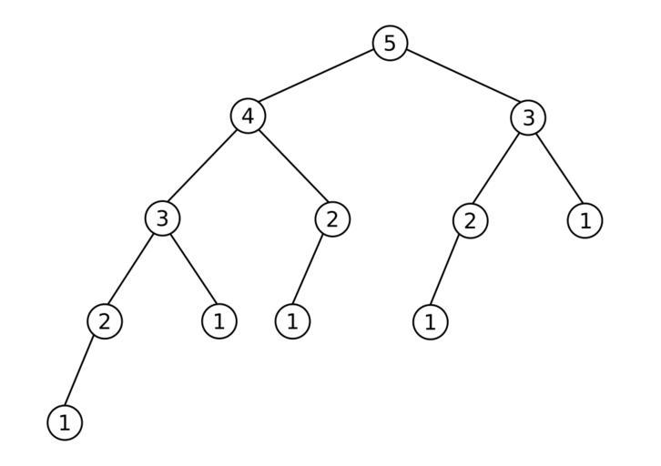 Keywords: Fibonacci Tree 5.svg Fibonacci-Baum der Stufe 5 Die Zahlen in den Knoten geben die Stufe des Teilbaumes an dessen Wurzel der Knoten ist own 2007-07-21 Tobias Knerr Fibonacci trees