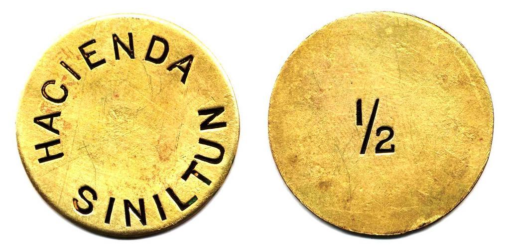 Ficha por medio real de la Hacienda Siniltún, Yucatán (anverso y reverso).jpg (1477x726)