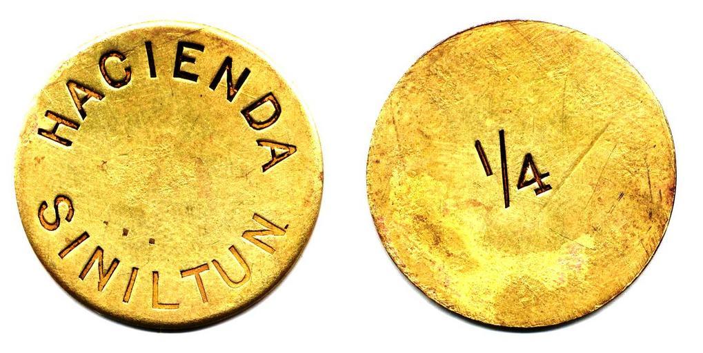 View Original:Ficha por un cuarto de real de la Hacienda Siniltún, Yucatán (anverso y reverso).jpg (1467x737)