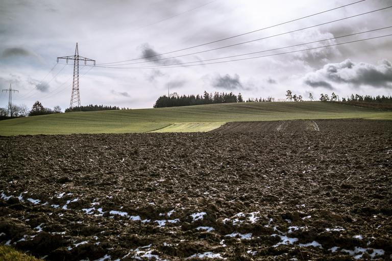 Keywords: field arable clouds power poles ground arable land sky agriculture winter autumn