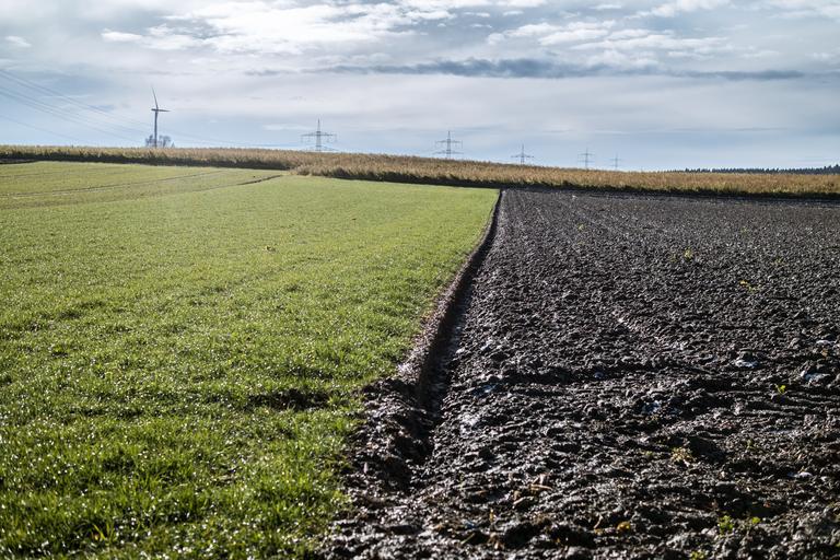 Keywords: field arable clouds power poles pinwheel ground arable land sky agriculture
