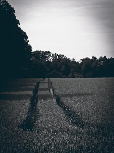 Keywords: field away nature landscape meadow lane cornfield dirt track agriculture mood black white atmosphere