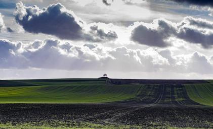 Keywords: field fields agriculture landscape green nature clouds country life lower saxony wolfenbüttel schöppenstedt grass wide land dark clouds tree vahlberg