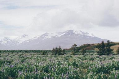 Keywords: field flowers landscape view mountains snow covered nature vegetation season blooming blossoms violet idyllic flora wildflower outdoors growth