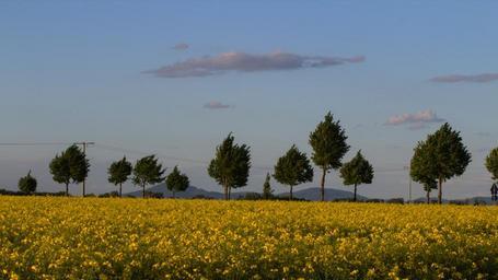 Keywords: field of rapeseeds landscape clouds sky trees spring baden württemberg
